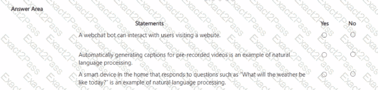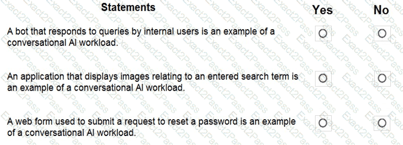 For each of The following statements, select Yes If the statement is true. Otherwise, select No.