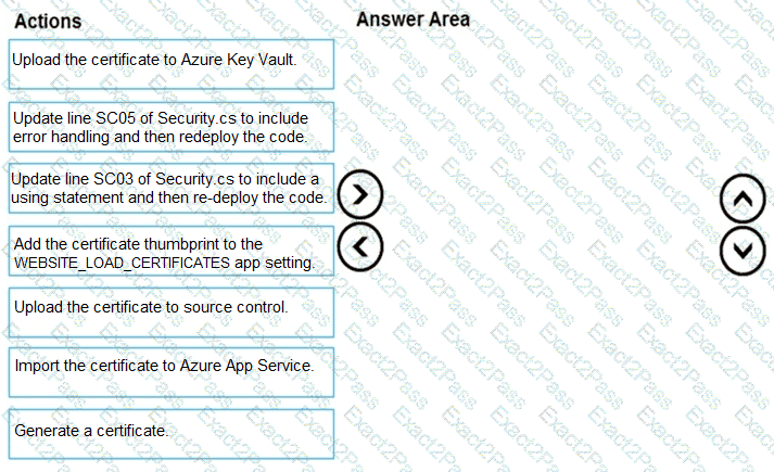Which four actions should you recommend be performed in sequence? To answer, move the appropriate actions from the list of actions to the answer area and arrange them in the correct order.