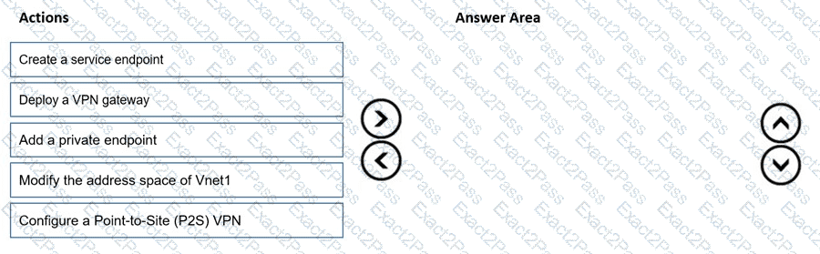 Which three actions should you perform in sequence before you can integrate WebApp1 and Vnet1? To answer, move the appropriate actions from the list of actions to the answer area and arrange them in the correct order.