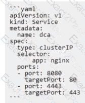 Solution: Traffic sent to the IP of this service on port 80 will be routed to port 8080 in a random pod with the label app:
