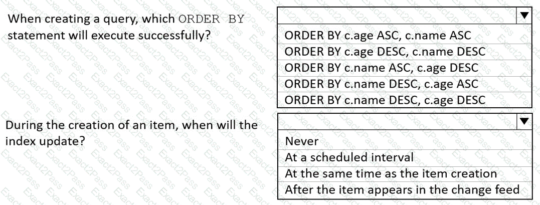 How should you define the indexing poky? To answer, select the appropriate options in the answer area. NOTE: Each correct selection Is worth one point.