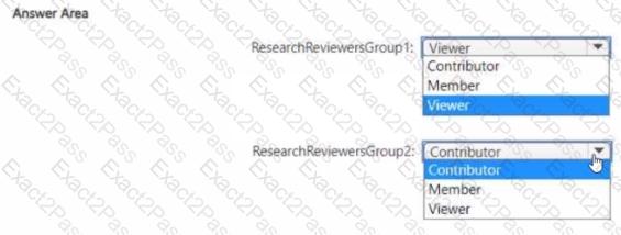 Which workspace rote assignments should you recommend for ResearchReviewersGroupl and ResearchReviewersGroupZ? To answer, select the appropriate options in the answer area.
