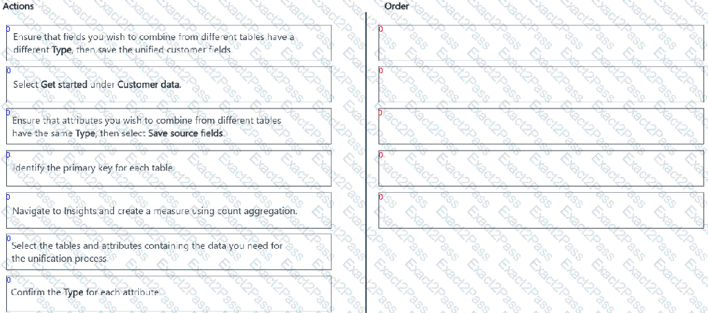 In which order should you perform the actions? To answer, move all actions from the list of actions to the answer area and arrange them in the correct order.