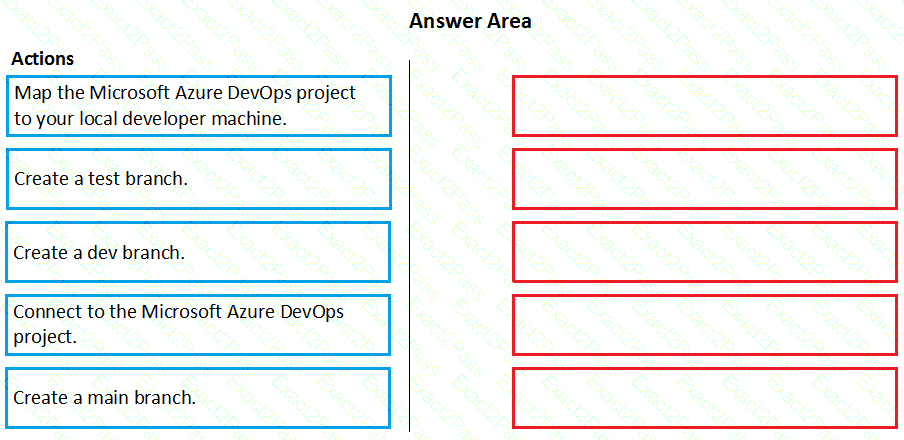 In which order should you perform the actions? To answer, move all actions from the list of actions to the answer area and arrange them in the correct order.