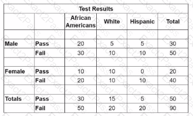 A summary of an organization's testing results is presented. Each applicant who passes the test is hired.