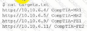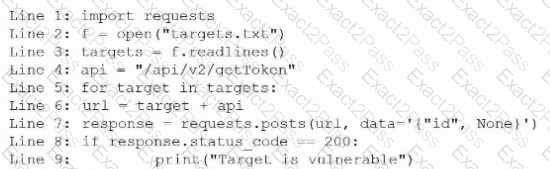 During an engagement, a penetration tester receives a list of target systems and wants to enumerate them for possible vulnerabilities. The tester finds the following script on the internet: