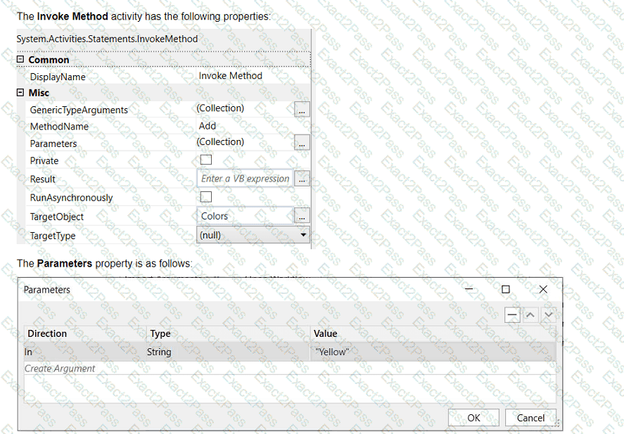A developer wants to add items to a list of strings using the Invoke Method activity. The list is declared as follows: