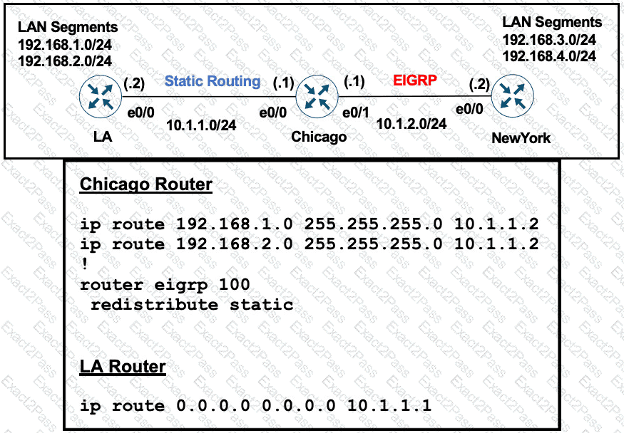A user on the 192.168.1.0/24 network can successfully ping 192.168.3.1, but the administrator cannot ping 192.168.3.1 from the LA router. Which set of configurations fixes the issue?