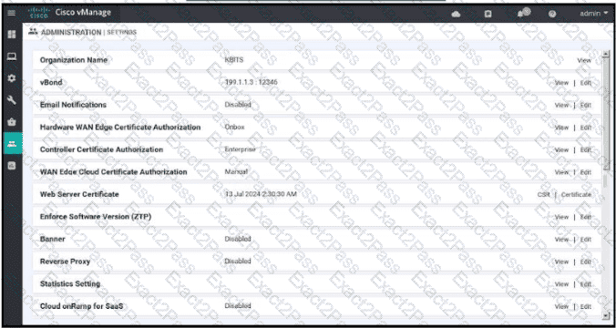 Which two configurations are needed to get the WAN Edges registered with the controllers when certificates are used? (Choose two)
