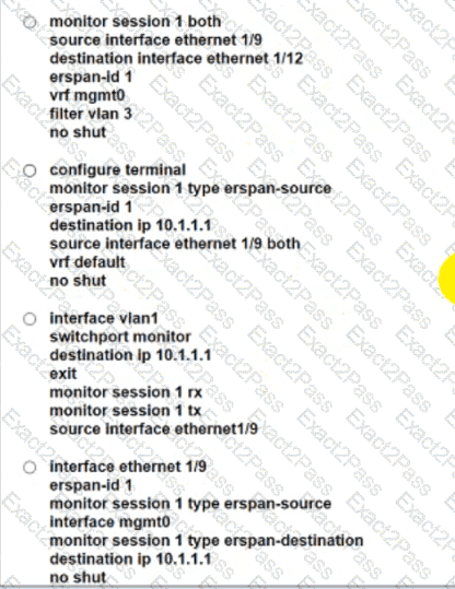 An engineer implements an Application Performance Monitoring (APM) solution. The solution runs in a vSphere infrastructure where the vSwitch support for promiscuous mode is disabled for security reasons. As a result, the final implementation must receive a copy of bidirectional traffic to a load balancer that is connected to a Cisco Nexus 93108 series switch. The APN solution GRE encapsulated traffic. Which configuration must be applied to the switch to meet this requirement?