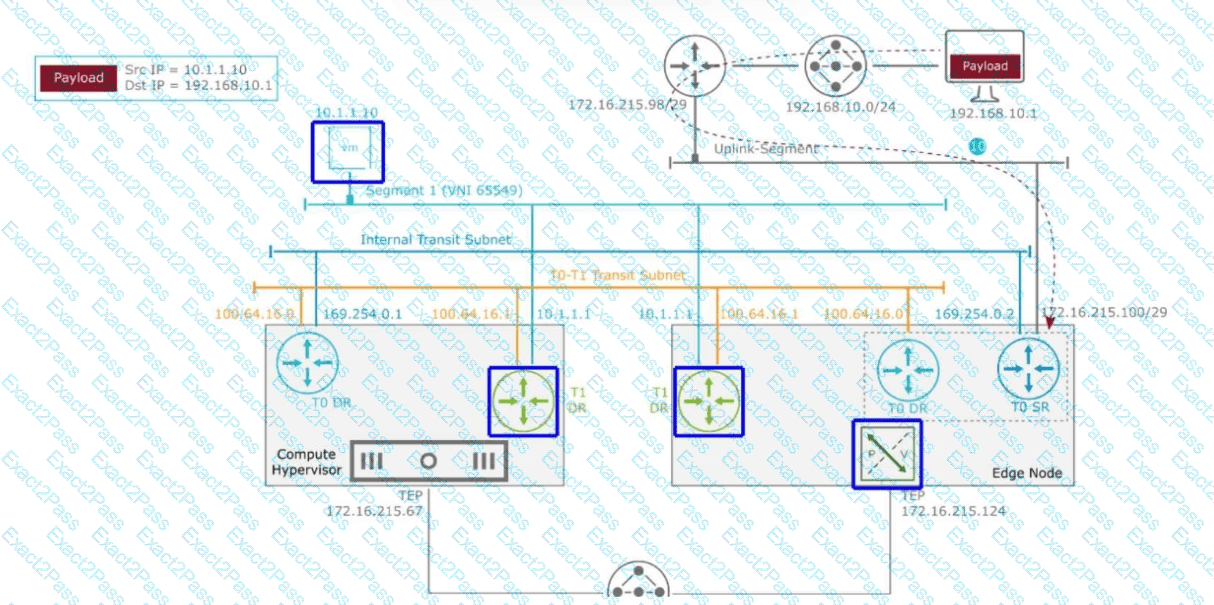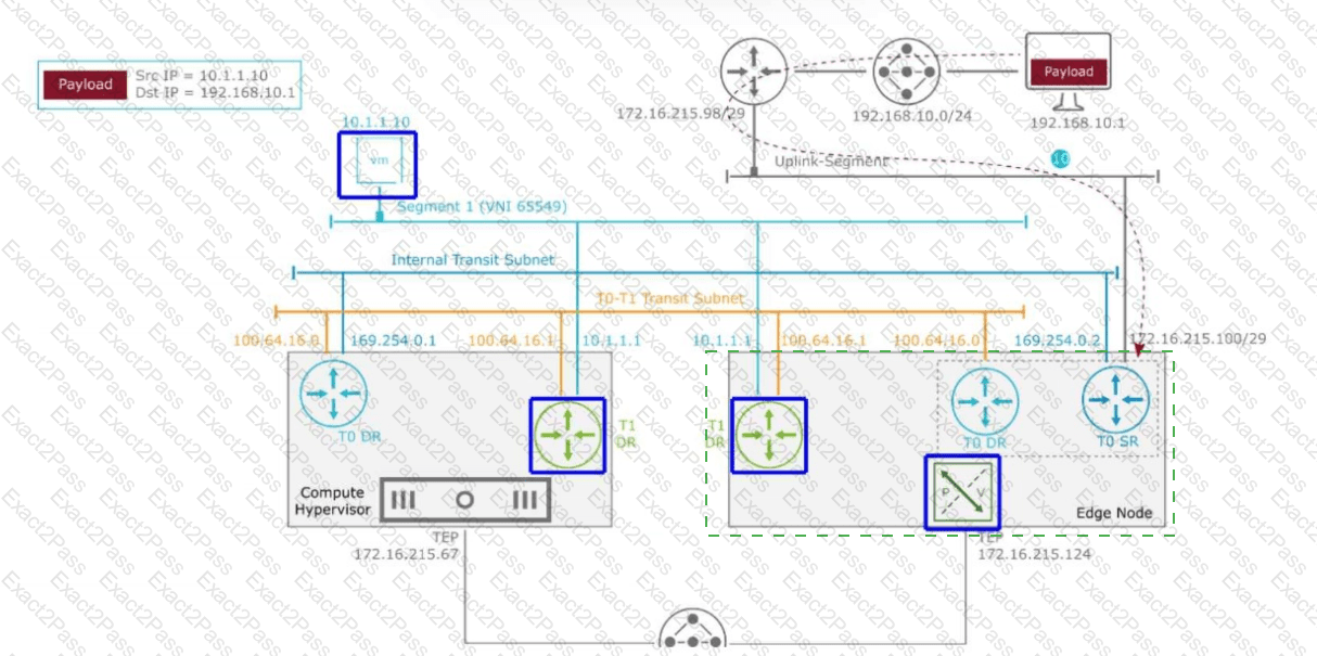 The packet arrived at the Tier-0 SR at 172.16.215.100/29.