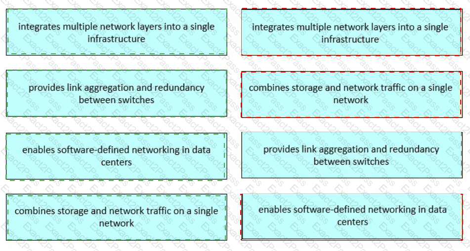 Drag and drop the functions from the left onto the corresponding Cisco data center technologies on the right.