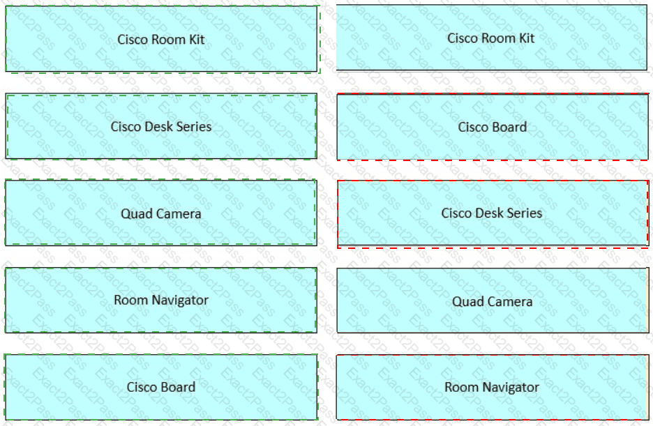 Drag and drop the Cisco collaboration endpoints from the left onto the corresponding descriptions on the right.