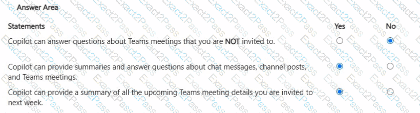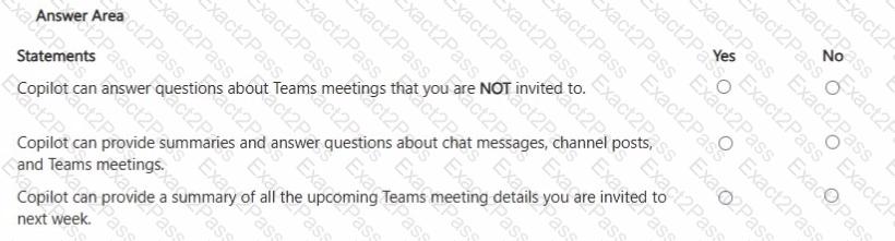 For each of the following statements, select Yes if the statement is true. Otherwise, select No.