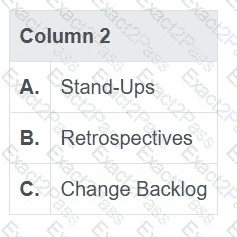 Column 1, select from Column 2 the relevant agile change practice being