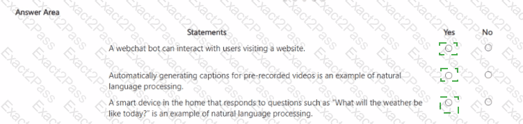 For each of The following statements, select Yes If the statement is true. Otherwise, select No.