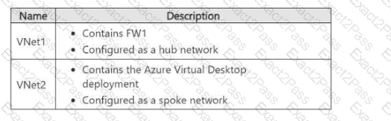 You have an Azure subscription that contains an Azure Virtual Desktop deployment, a standard Azure Firewall instance named FW1, and the virtual networks shown in the following table.