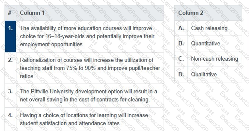 Column 1 contains activities taken in the Pittville project. For each entry in Column 1, select from Column 2 the Action within the