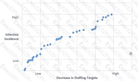 A nursing director for a unit in a cancer hospital Is reviewing and assessing outcomes data in the followingscatter diagram: