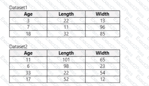 You use Azure Machine Learning designer to load the following datasets into an experiment: