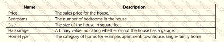You have a dataset that includes home sales data for a city. The dataset includes the following columns.