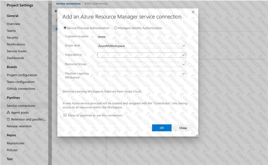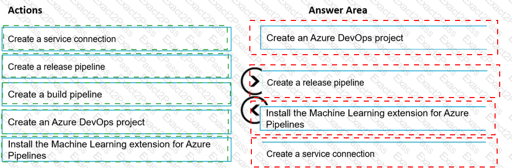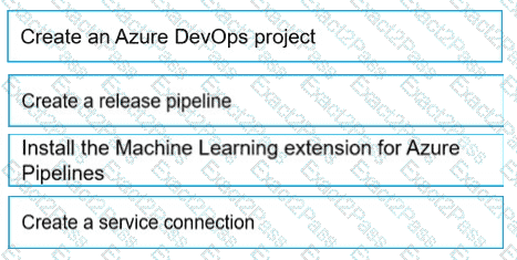 You create an Azure Machine Learning workspace and a new Azure DevOps organization. You register a model in the workspace and deploy the model to the target environment.