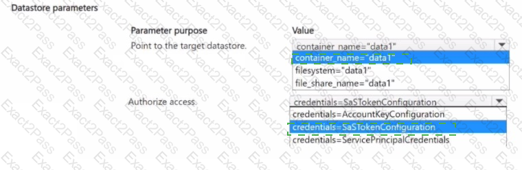 You plan to create an Azure Blob datastore in Workspace1. The datastore must target the Blob Storage by using Azure Machine Learning Python SDK v2. Access authorization to the datastore must be limited to a specific amount of time.