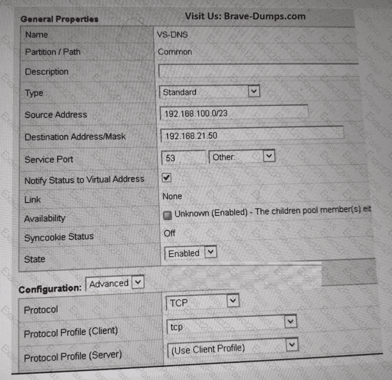 Which property change should the BIG-IP Administrator make in the Virtual Server to resolve this issue? (Choose one answer)