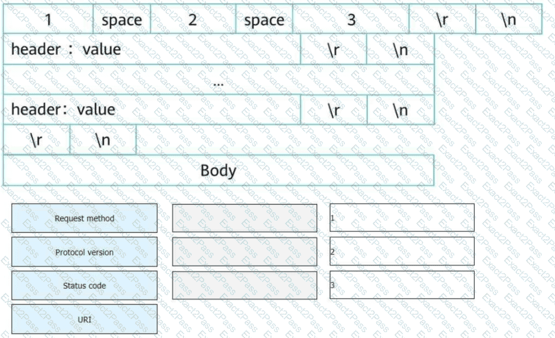 An HTTP request line consists of three fields. Select the fields to form a complete HTTP request message.