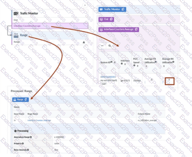 The ge-0/0/5 interface on the my-esl-001-leaf1 node receives an average of greater than 1 Mbps of traffic. Which two statements are correct in this scenario? (Choose two.)