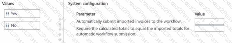 How should you configure the system? To answer, move the appropriate Value to the correct Parameter. You may use each Value once, more than once, or not at all. You may need to move the split bar between panes or scroll to view content.