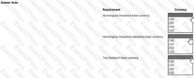 configure currencies? To answer, select the appropriate options in the answer area.