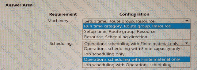 You need to configure the requirements for metal fabrication equipment maintenance. What must you configure? To answer, select the appropriate options in the answer area.