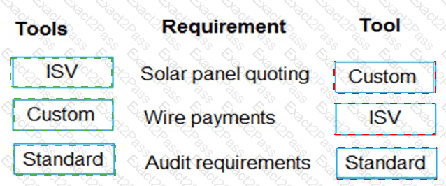 What should you recommend? To answer, drag the appropriate tools to the correct requirements. Each tool may be used once, more than once, or not at all. You may need to drag the split bar between panes or scroll to view content.