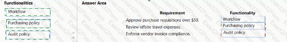 What should you recommend? To answer, drag the appropriate functionalities to the correct requirements. Each functionality may be used once, more than once, or not at all. You may need to drag the split bar between panes or scroll to view content