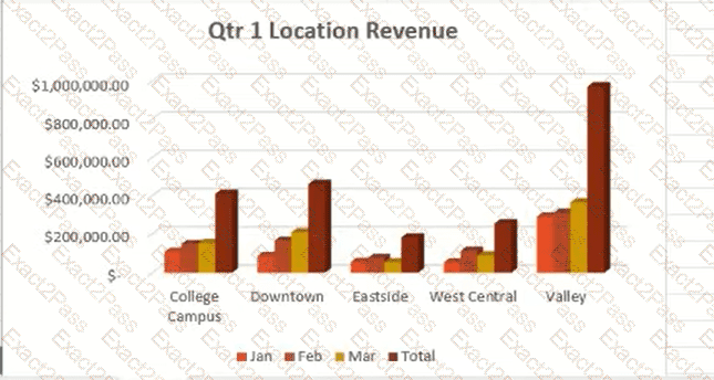 In the Qtr 1 worksheet change the configuration of the Q1 Location Revenue chart so that it displays the months on the x-axis and the revenue on they-axis.