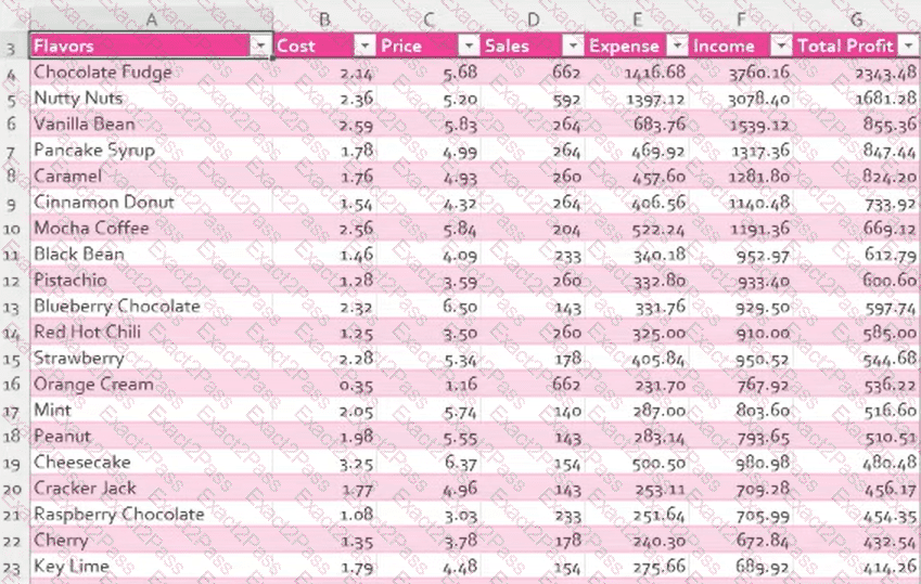 Filter the Profits worksheet to display only flavors with Total Profit that are Above Average.