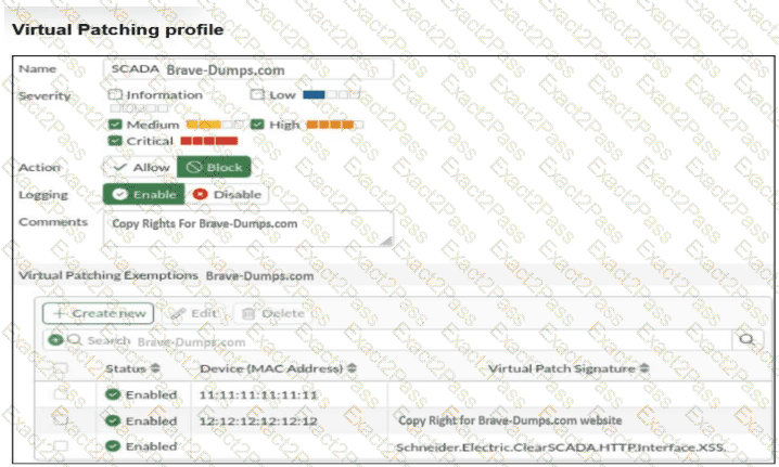 A Virtual Patching profile is shown. You have recently updated your SCADA system and would like to apply the SCADA virtual patching profile. Which two statements about this profile are correct? (Choose two answers)