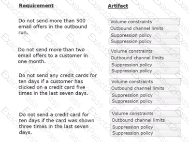 In the Answer Area, select the correct artifact you use to implement each requirement.