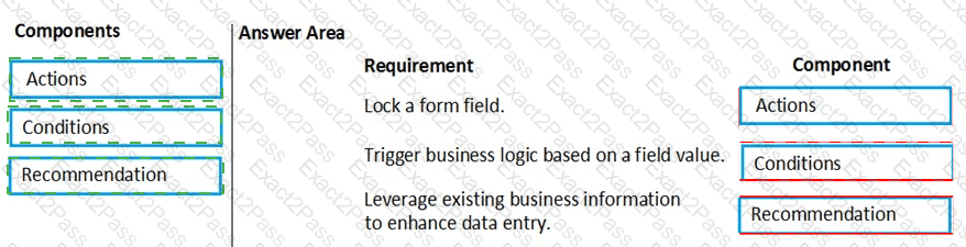 Which components should you use? To answer, drag the appropriate components to the correct requirements. Each component may be used once, more than once, or not at all. You may need to drag the split bar between panes or scroll to view content.