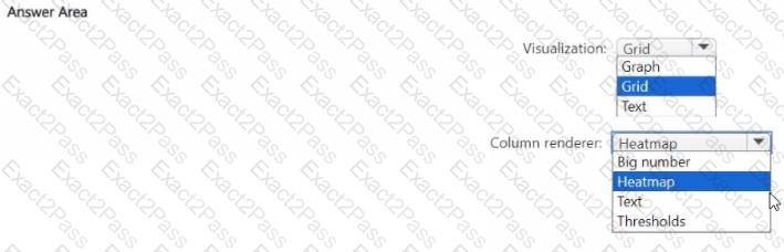 You need to create a visual that will change the color of the errCount column based on the value returned. How should you configure the visual? To answer, select the appropriate options in the answer area. NOTE: Each correct selection is worth one point.