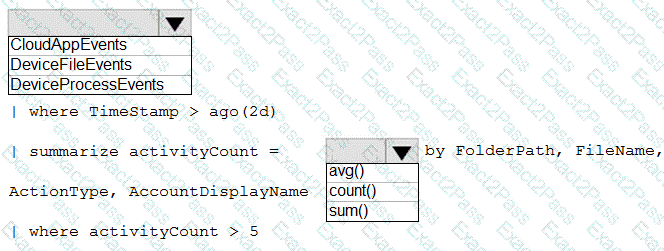 How should you complete the query? To answer, select the appropriate options in the answer area.