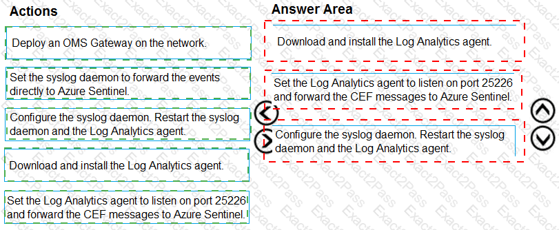 Which three actions should you perform in sequence? To answer, move the appropriate actions form the list of actions to the answer area and arrange them in the correct order.