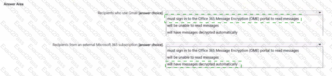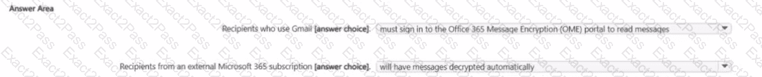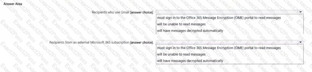 You need to test Microsoft Purview Advanced Message Encryption capabilities for your company. The test must verify the following information: