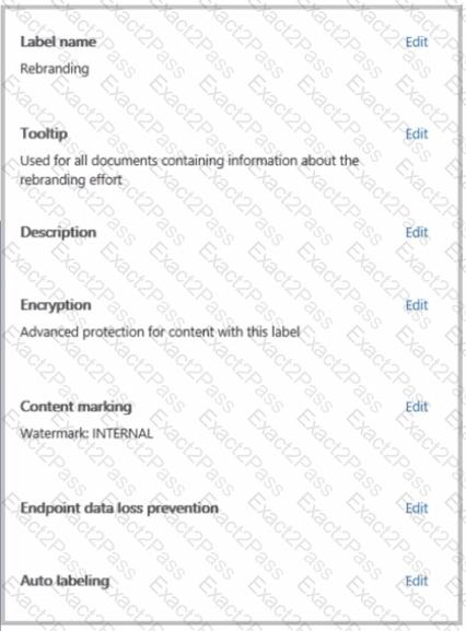 You have a Microsoft 365 sensitivity label that is published to all the users in your Microsoft Entra tenant as shown in the following exhibit.